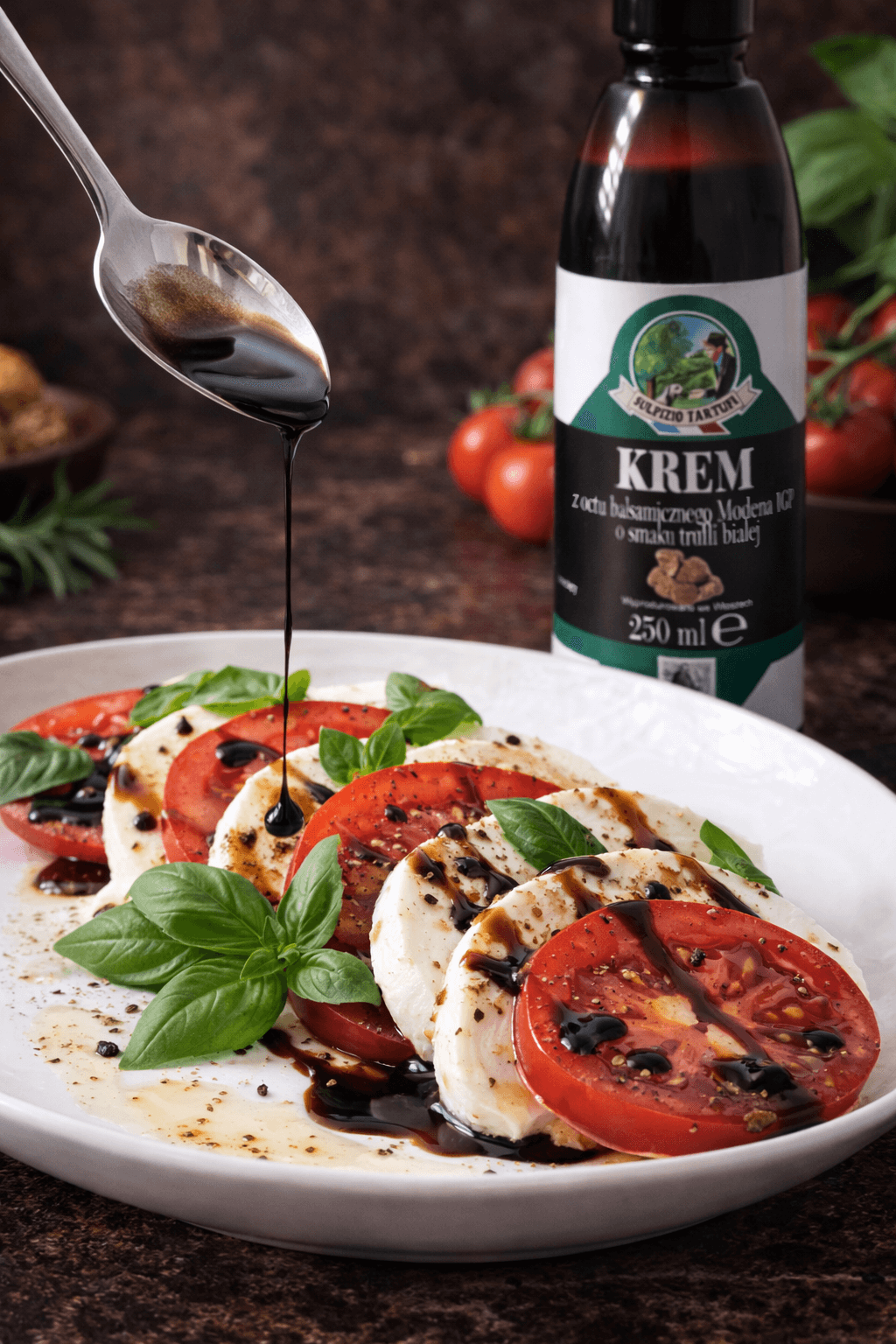 Krem balsamiczny ma swoje korzenie w tradycji produkcji octu balsamicznego z Modeny, która sięga setek lat wstecz we Włoszech. Inspiracją do stworzenia tego unikalnego produktu była chęć połączenia tradycyjnego smaku octu balsamicznego z luksusową nutą trufli, cenioną od wieków za swój intensywny leśny aromat.