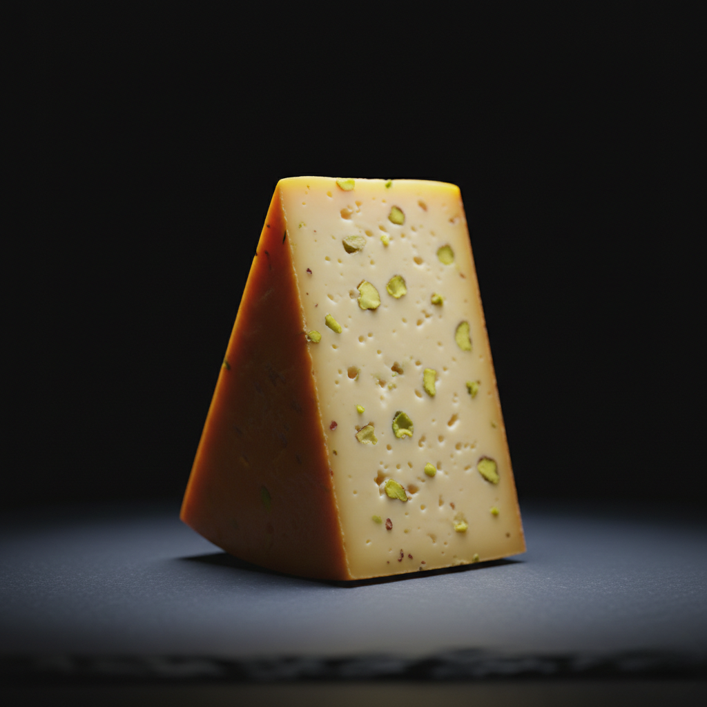 Ta unikalna gouda z pistacją zachwyca swoją maślaną bazą, która stanowi idealne tło dla wykwintnych dodatków. W rezultacie każdy kęs uwalnia chrupiące pistacje oraz delikatnie słodkie nuty migdałowe. Warto dodać, że posiada on intrygujący, korzenny finisz, który długo utrzymuje się na podniebieniu.