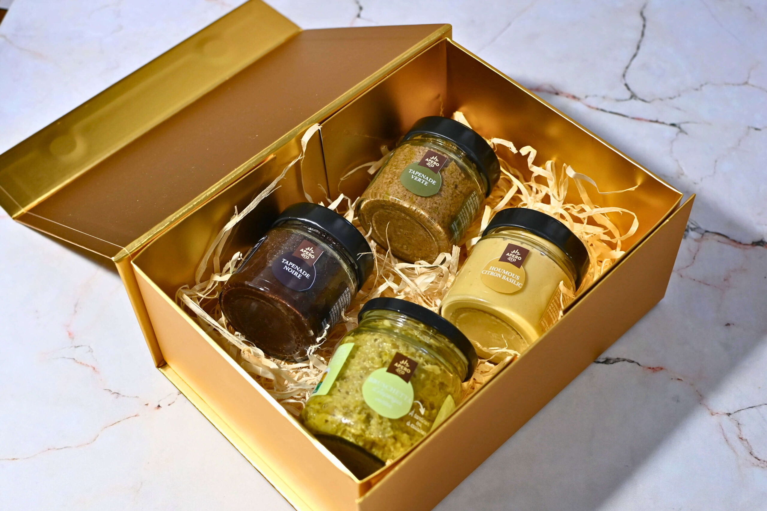 To zestaw, który zachwyci każdego miłośnika kuchni francuskiej, wyrafinowanych smaków i naturalnych składników. W środku znajduje się terrina z kaczki z armaniakiem, krem z kasztanów d’Ardèche, maślane ciastka Le Croqu’nats z parmezanem oraz chipsy czekoladowe z Belgii – razem tworzą perfekcyjnie zbalansowaną ucztę, łączącą słodycz, wytrawność i aromaty południowej Francji.